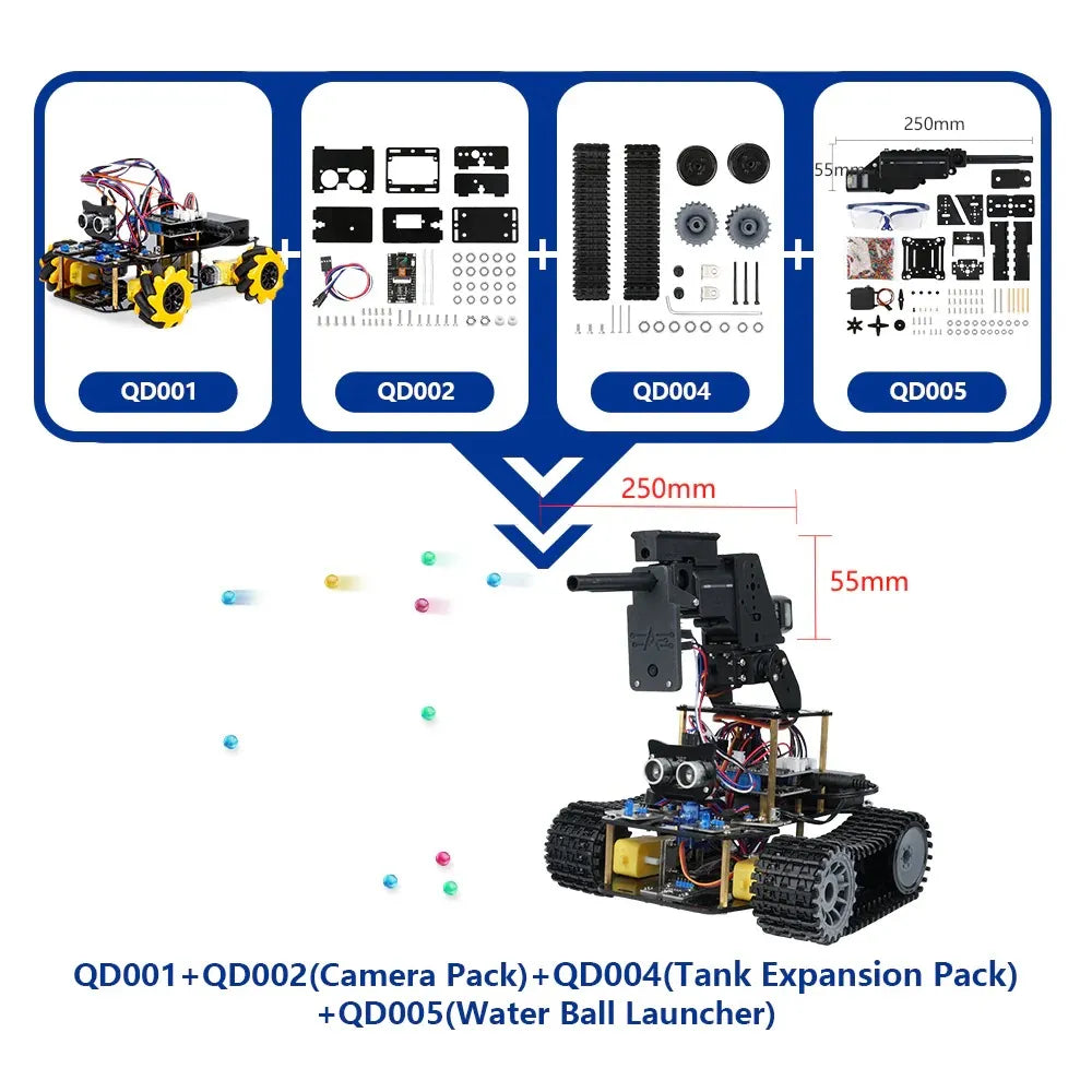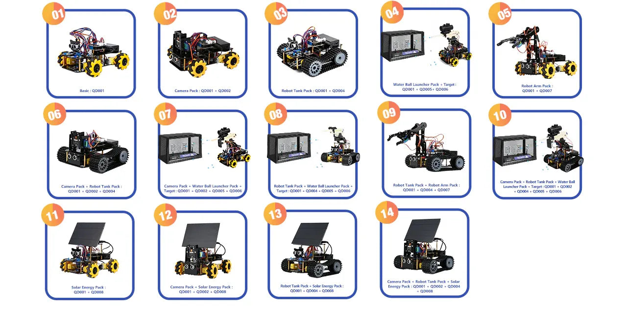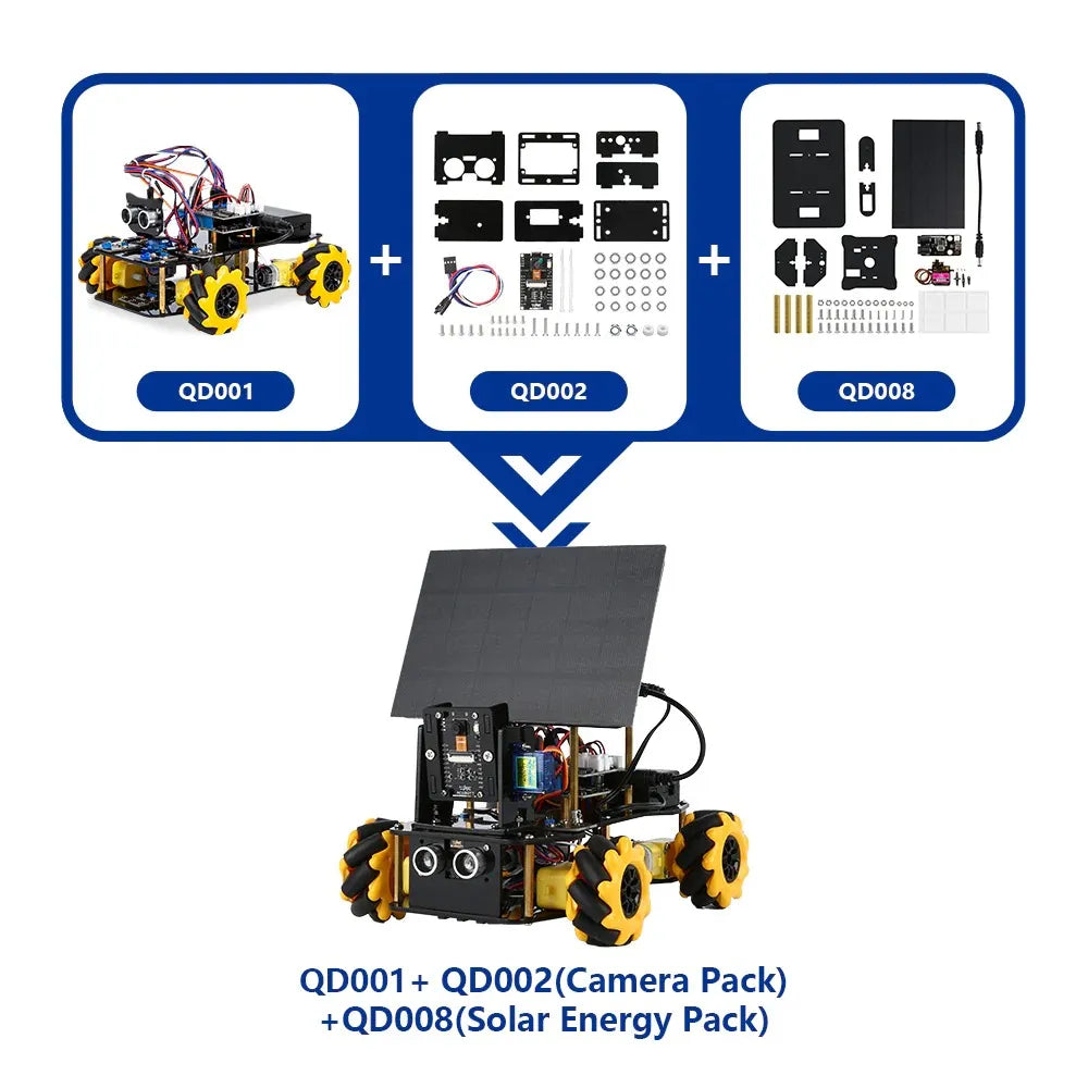 | Unterstützt Erweiterungen | Kombination: Das QD001 Basis-Smart-Car-Kit dient als Kern, und Erweiterungspakete können hinzugefügt werden, um Form und Funktionen anzupassen. |