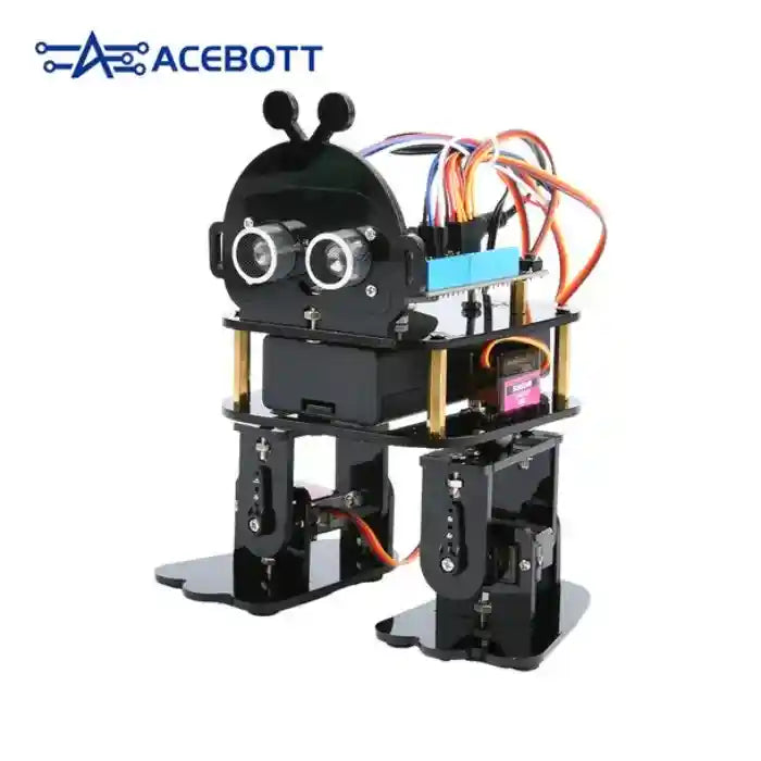 Das ACEBOTT Biped Robot Kit bietet eine einsteigerfreundliche Robotik mit 12 vorprogrammierten Aktionen—Kicken, Neigen, Folgen, Stampfen, Hindernisvermeidung—und 4-Richtungs-Beweglichkeit, plus nahtlose Kompatibilität mit Arduino und Python; detaillierte, schrittweise Tutorials führen dich durch Montage und Programmierung, wodurch Robotik und Elektronikingenieurwesen zugänglich, spannend und optimiert für Kinder und Lernende werden, die praktische STEM-Bildung zum Anfassen suchen, SEO-optimiert.