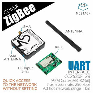 COM. Zigbee ist ein selbstorganisierendes Zigbee-Netzwerkkommunikationsmodul, das von M5Stack eingeführt wurde. Das Modul übernimmt die CC2630F128-Lösung, integriert intern den Zigbee-Protokollstapel und öffnet die serielle Kommunikationsschnittstelle. Mit einer integrierten externen Antenne, einer stabilen Einzelknoten-Kommunikationsentfernung von bis zu 1 km und einer Routertiefe von 200 Ebenen können Sie über den MESH-Netzwerkmodus Ihre IoT-Anwendung in einem weiten Bereich erweitern, und das bei extrem niedrigem Stromverbrauch und hoher Empfindlichkeit. Das Zigbee-Netzwerk kann Hunderte von Knoten unterstützen und verfügt über verbesserte Sicherheitsfunktionen. Es kann vollständige und interoperable IoT-Lösungen für die Heim- und Gebäudeautomation bereitstellen.