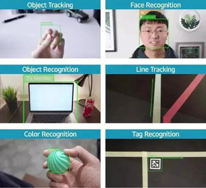 - Sechs KI-Funktionen: Objekterkennung, Gesichtserkennung, Linienverfolgung, Farberkennung, Tag-Erkennung und Objektklassifizierung.