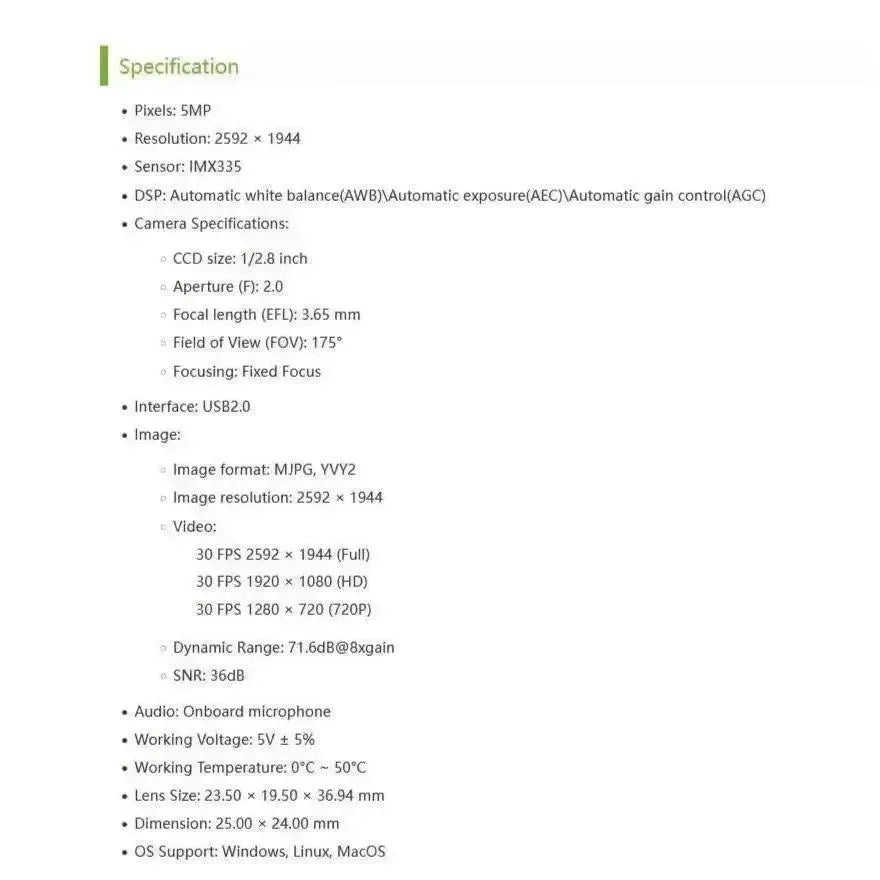 IMX335 5MP USB-Kamera (B), 2K-Videoaufzeichnung