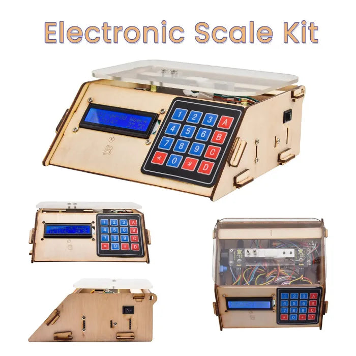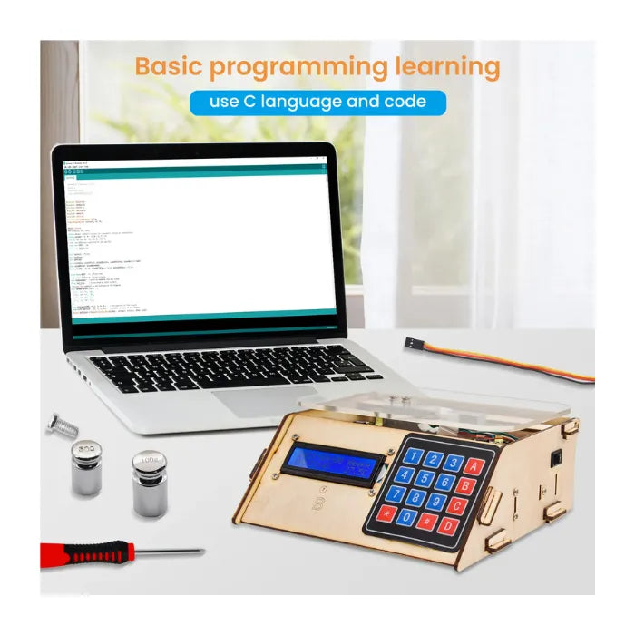 Das Set enthält ein Membran-Tastenfeld, einen HX711-basierten Wägezellen-Sensor, ein DS3231 RTC-Modul und ein LCD 1602 Display 📺. Mit ausführlichen Tutorials und herunterladbarem Code lernst du, wie jedes Modul funktioniert und wie du deine eigene intelligente Waage mit C-Programmierung 💻 anpassen kannst.