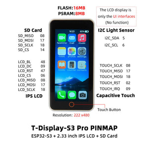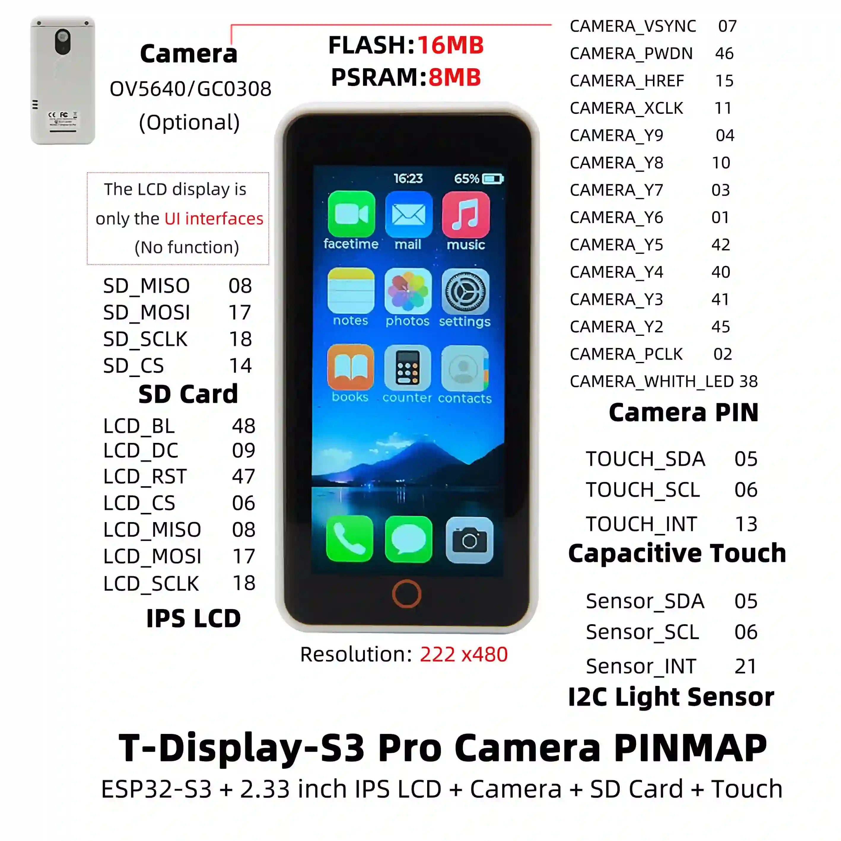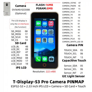 LILYGO T-Display S3 Pro ESP32-S3 2,33" Touchscreen OTG-Kamera