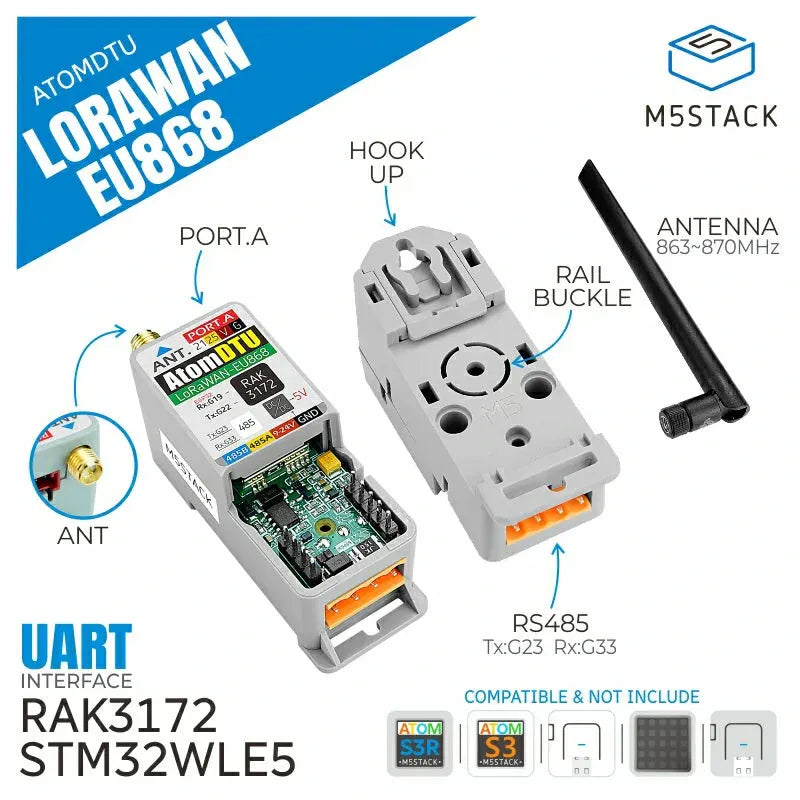 📡 Atom DTU LoRaWAN‑EU868 – Programmierbare LoRaWAN DTU (868 MHz Band)