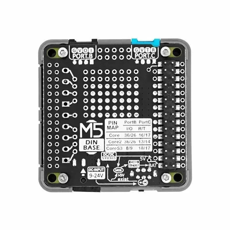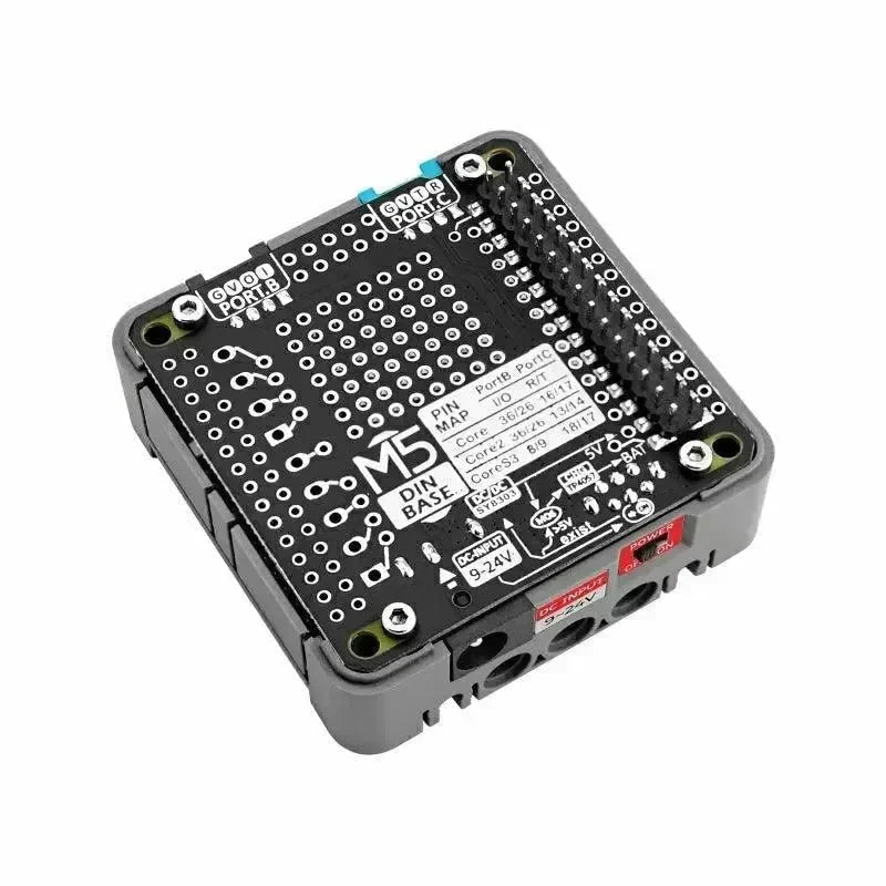 DIY-freundlich gestaltet die DinBase die Entwicklung eigener Projekte: Eine Reihe von Proto-Pads auf der internen Leiterplatte bietet reichlich Platz für DIY-Schaltungen und Komponenten, sodass Sie kreativ werden, eigene Schaltkreise erstellen und die Fähigkeiten Ihrer M5Core-Geräte erweitern können.