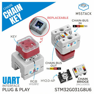 Dank des integrierten STM32G031G8U6 Mikrocontrollers ⚡ und der UART-Kaskadenkommunikation lässt sich der Chain Key nahtlos mit weiteren Chain-Modulen verbinden. Über die zwei HY2.0-4P Erweiterungsschnittstellen können komplexe und interaktive Anwendungen für Smart-Home-Steuerung 🏠 und Mensch-Maschine-Interaktion 🤝 realisiert werden.