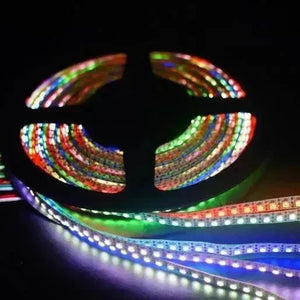 RGB-LED-Streifen mit eingebauten SK6812-LEDs sind flexible, digital adressierbare Lichtleisten, bei denen jede einzelne LED ihre eigene Farbe und Helligkeit individuell steuern kann. Dank des einfachen Single-Bus-Protokolls lassen sich die Streifen unkompliziert programmieren und eignen sich perfekt für kreative Beleuchtungsprojekte, smarte Lichtdesigns oder visuelle Effekte. Diese hohe Flexibilität macht sie ideal für Maker, Bastler und alle, die mit programmierbarer LED-Technologie arbeiten möchten.