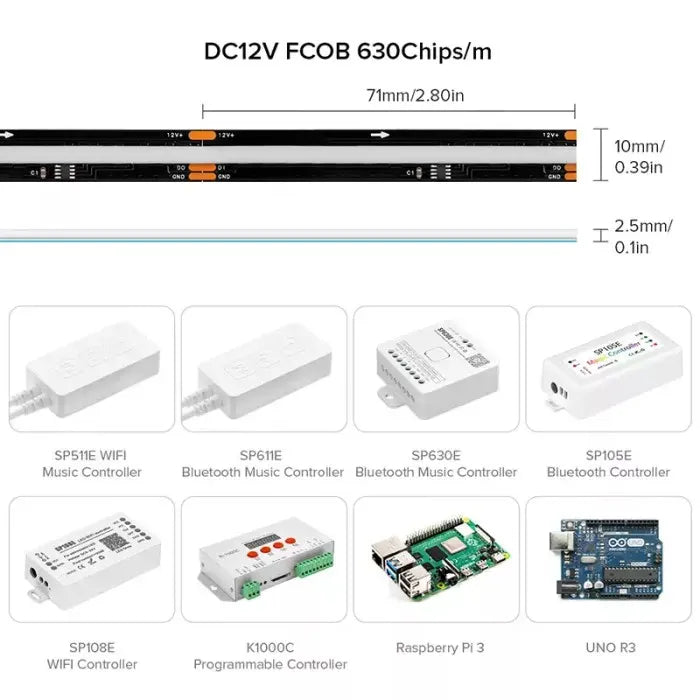 OpenELAB 24V FCOB WS2811 LED-Lichtstreifen RGB Vollfarbe 630 LEDs