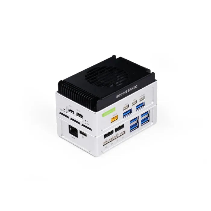 - Handgroßes Edge-AI-Gerät: Compact Größe bei 63mm x 95mm x 66,7mm, mit einem NVIDIA Jetson Orin NX 16GB Modul, Mini J401 Trägerplatine, Lüfter und Gehäuse. Unterstützt Desktop- und Wandmontage.