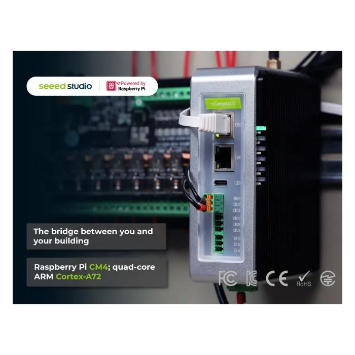 Der reComputer R1000 ist ein leistungsstarkes und vielseitiges industrielles Raspberry Pi-basiertes IoT-Gateway und Steuerungssystem, das auf der CM4 (Compute Module 4) Plattform basiert und für Edge-KI-Anwendungen optimiert ist. Mit 3× isolierten RS485-Schnittstellen, Dual-Ethernet-Ports und nativer Unterstützung für BACnet und Modbus bietet er alle essenziellen Schnittstellen für robuste Industrial Edge IoT-Umgebungen. Dank der Kompatibilität mit KI-NPU-Beschleunigern eignet sich der R1000 hervorragend für Fernzugriffskontrollen sowie Anwendungen in den Bereichen BMS (Gebäudemanagementsysteme), BAS und iBMS.