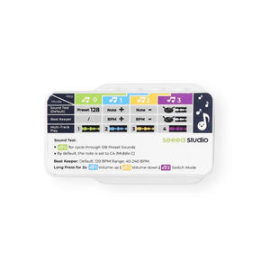 Der XIAO MIDI-Synthesizer verfügt über einen voreingestellten Metronom-Modus, in dem du die Tasten drücken kannst, um dein BPM zu ändern und die Drum-Spur umzuschalten, um Rhythmen mühelos zu synchronisieren und deine Beats mit nur einem Gerät zu steuern. Keine zusätzlichen Geräte oder Apps erforderlich.