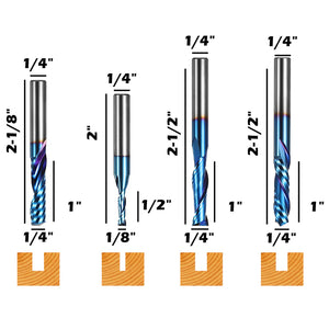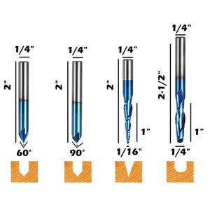 Kosteneffizient: Mit einem Schaftdurchmesser von 1/4'' (6,35 mm) ist dieses Fräser-Set für allgemeine Anwendungen konzipiert und enthält 8 verschiedene Typen – Up Cut mit 2 Schneiden; Down Cut mit 2 Schneiden; Compression Cut mit 2 Schneiden*2; O-Flute; konische Spitze; Kugelkopf; V-Nut*2 – entwickelt, um Ihre Anforderungen zu erfüllen.