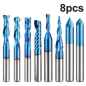 MRBC08 1/4"-Schaft, Schaftfräser, CNC-Fräser, Universal, Nano-Blau-Beschichtung, 8 Stück