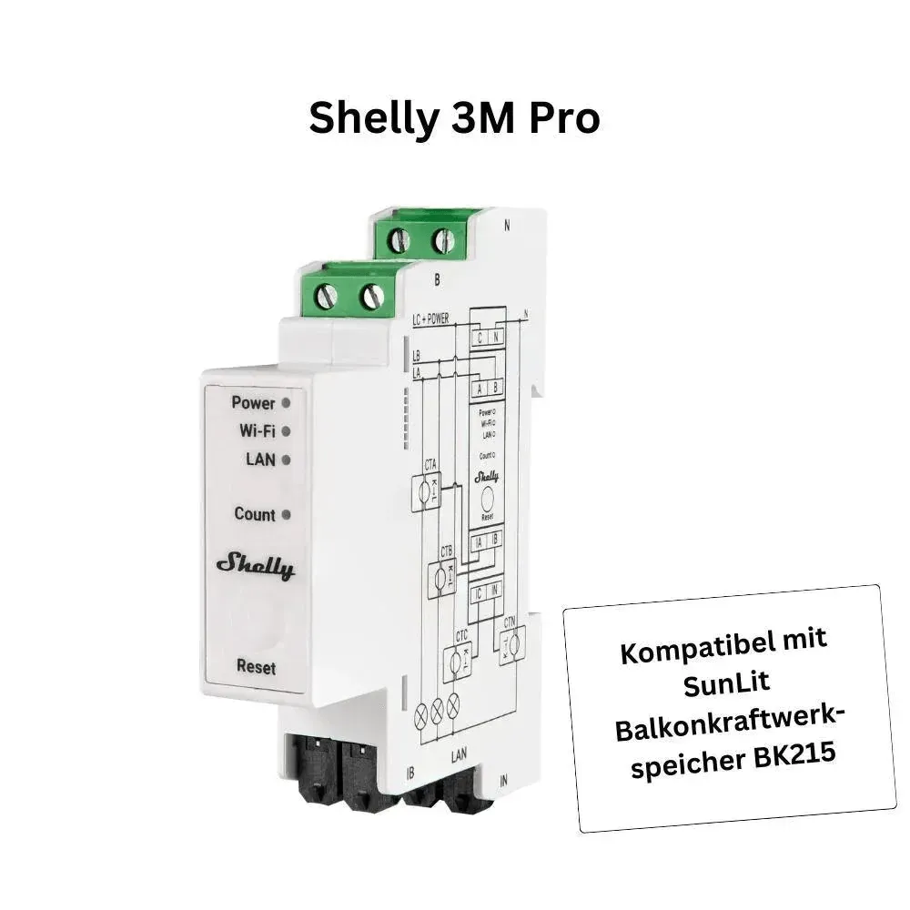 Shelly Pro 3EM ist vollständig kompatibel mit dem Balkonstromspeichersystem SunLit BK215.