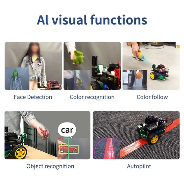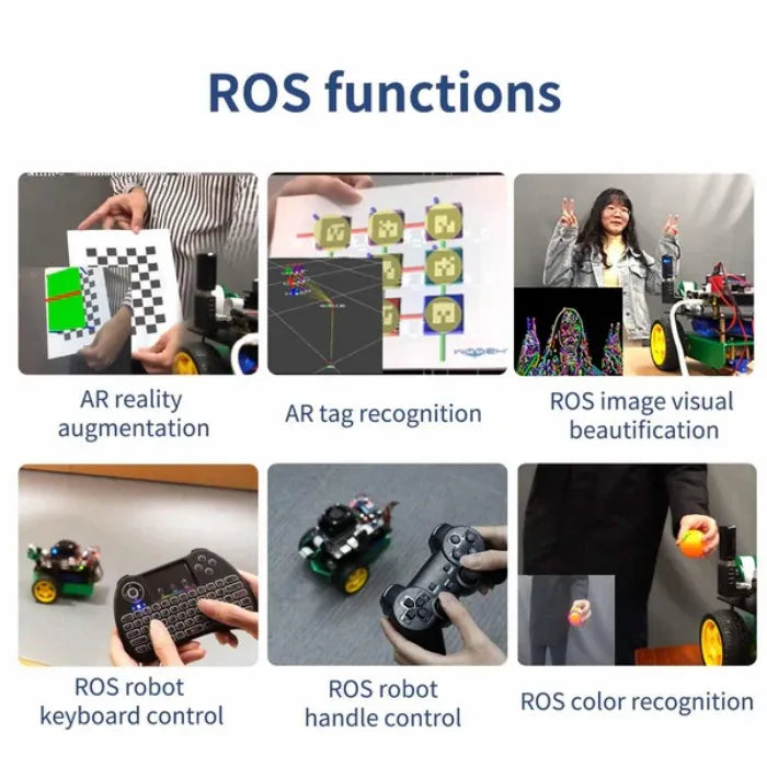 JetBot Mini ist ein auf ROS basierender KI-Roboter, konzipiert um den NVIDIA Jetson Nano zu nutzen, läuft ROS nativ, setzt OpenCV für Bildverarbeitung ein und verwendet Python 3 als Hauptprogrammiersprache; Entwicklung erfolgt über JupyterLab. Die sprachenübergreifende Kamerapitch-Verstellung ermöglicht Autopilot, Farberkennung und Gesichtserkennung; plattformübergreifende Steuerung per App, Handheld-Controller oder PC; zusätzlich bieten wir Open-Source-Kurse und zugehörigen Source Code, um ROS- und KI-Programmierung effizient zu erlernen und schnell in Projekten einzusetzen.