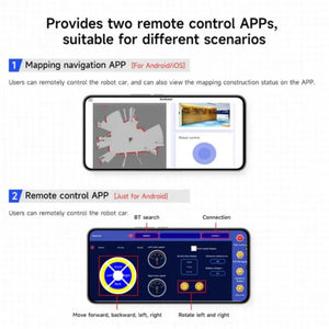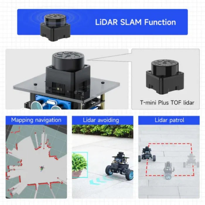 - Unterstützt SLAM-Kartierungsnavigation, Lidar/Ultraschall-Hindernisvermeidung und -verfolgung, mit Datenanzeige auf OLED.