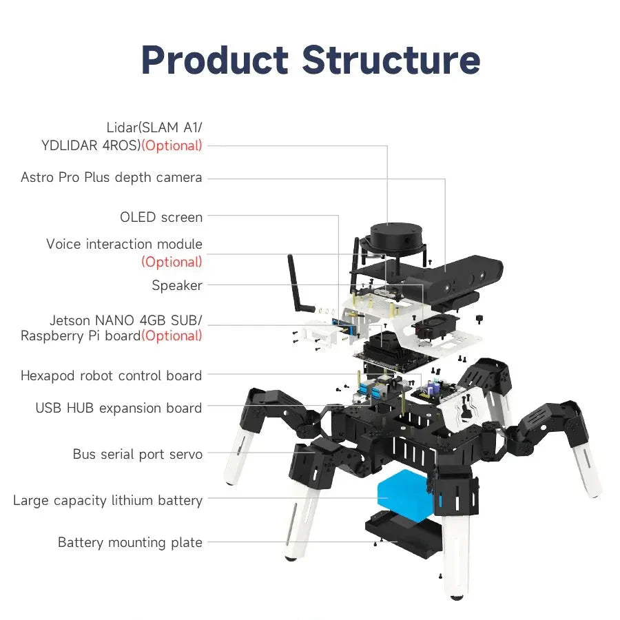 - Hochwertige Komponenten: Enthält 18 Stück 35KG Metall-Bus-Servos, eine Tiefenkamera, Lidar, ein Sprachinteraktionsmodul, Hochleistungsbatterien und weiteres Premium-Zubehör für stabile Leistung.
