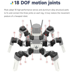 Der Muto RS ist ein hochmoderner, bionischer Hexapod-Roboter für den Desktop-Einsatz, der sorgfältig um das leistungsstarke ROS2-Betriebssystem herum entwickelt und konzipiert wurde. Er ist mit Jetson NANO und Raspberry Pi kompatibel und bietet so Flexibilität für vielfältige Entwicklungsanforderungen. Das Gehäuse besteht vollständig aus strapazierfähiger Aluminiumlegierung und integriert 18 Stück 35KG serielle Bus-Servos, eine Tiefenkamera, Lidar und Sprachmodule.
