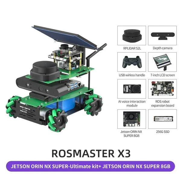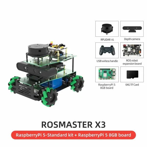 Der ROSMASTER X3 repräsentiert einen Durchbruch in der Bildungsrobotik und kombiniert fortschrittliche ROS2-Architektur mit vielseitiger Hardware-Kompatibilität. Diese professionelle Plattform unterstützt Jetson NANO 4GB, Jetson Orin NANO SUPER, Jetson Orin NX SUPER und Raspberry Pi 5 und ist ideal für Studierende, Forscher und Entwickler, die autonome Systeme und KI-Anwendungen erforschen.