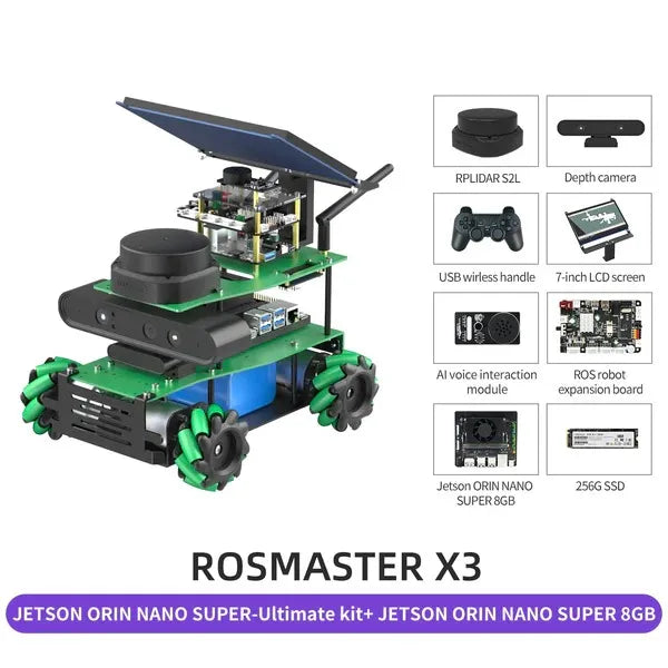 Der ROSMASTER X3 repräsentiert einen Durchbruch in der Bildungsrobotik und kombiniert fortschrittliche ROS2-Architektur mit vielseitiger Hardware-Kompatibilität. Diese professionelle Plattform unterstützt Jetson NANO 4GB, Jetson Orin NANO SUPER, Jetson Orin NX SUPER und Raspberry Pi 5 und ist ideal für Studierende, Forscher und Entwickler, die autonome Systeme und KI-Anwendungen erforschen.