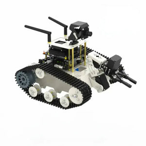 TRANSBOT-SE is a ROS-based tracked robot car featuring an all-aluminum chassis, a 3-DOF robotic arm, a 2-DOF PTZ camera, 520 encoder motors, and a high-capacity battery, with compatibility for Jetson Nano B01 and Raspberry Pi 5. It integrates OpenCV for image processing, MediaPipe for machine learning, an AI deep learning framework, and MoveIt for motion planning and simulation, delivering capabilities in robot motion control, gesture and object recognition, tracking, autonomous driving, and robotic-arm simulation control—designed for robust performance, easy integration, and SEO-friendly visibility in robotic automation and AI vision applications.