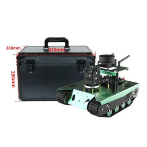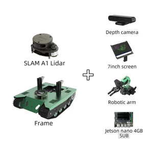 - The chassis is built from green aluminum oxide material and supports mounting a robotic arm, 2-DOF camera pan/tilt, a 7-inch display, and more. Users can debug the car anytime, anywhere.